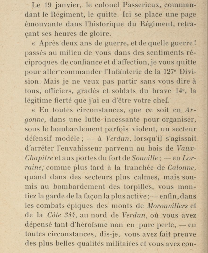 Nommé au commandement du 14e Régiment d’Infanterie le 15 décembre 1915.